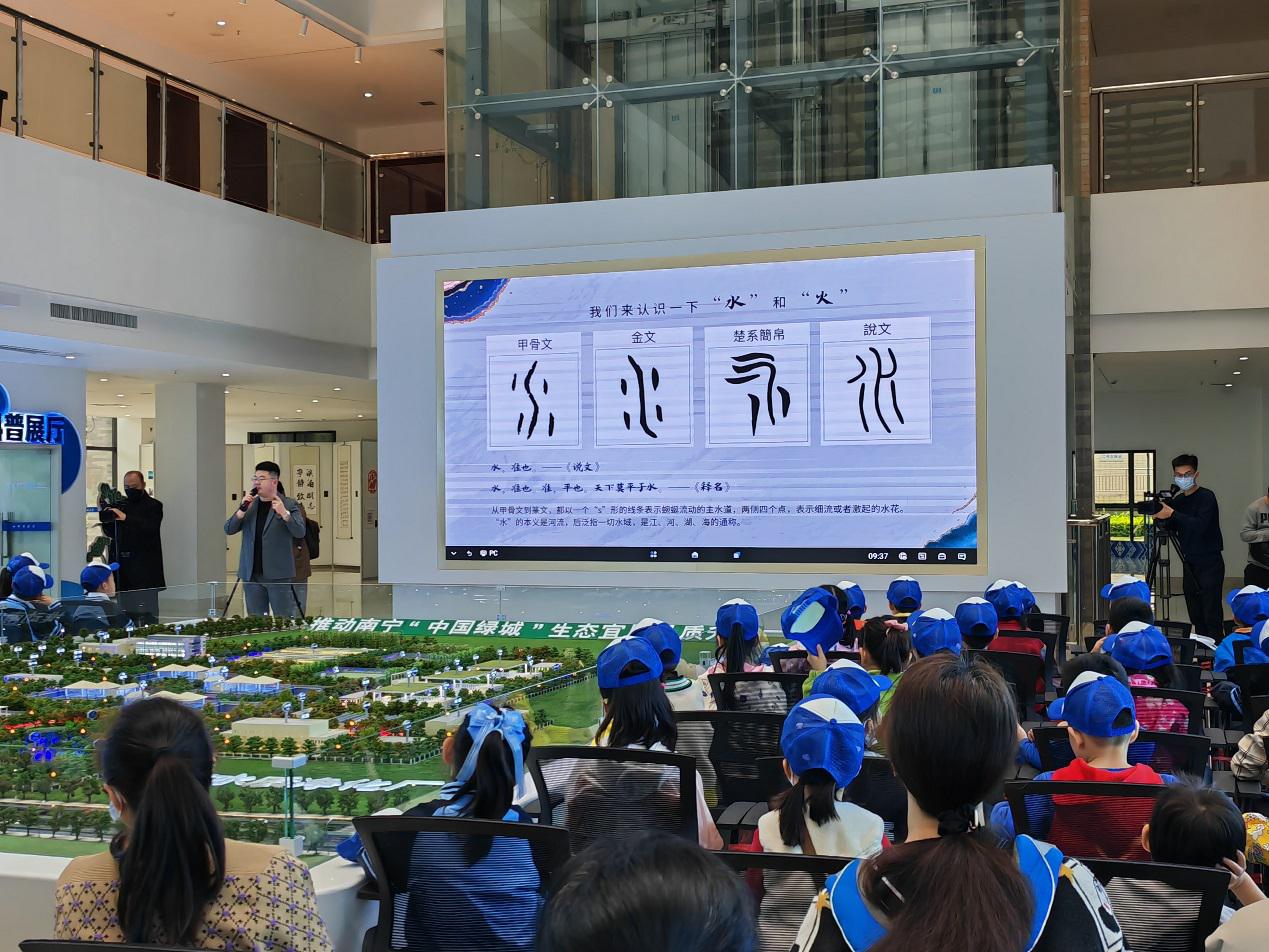 “‘水’這個(gè)字,從甲骨文到篆文,都以一個(gè)“s”形的線條表示蜿蜒流動(dòng)的主水道。自古以來(lái),水一直與人類生產(chǎn)生活息息相關(guān),水可以用來(lái)灌溉,還可以用來(lái)滅火……”上午9時(shí),在廣西廣播電視臺(tái)教育廣播主持人宇航生動(dòng)有趣,貼近生活的講課中,活動(dòng)拉開(kāi)了序幕。