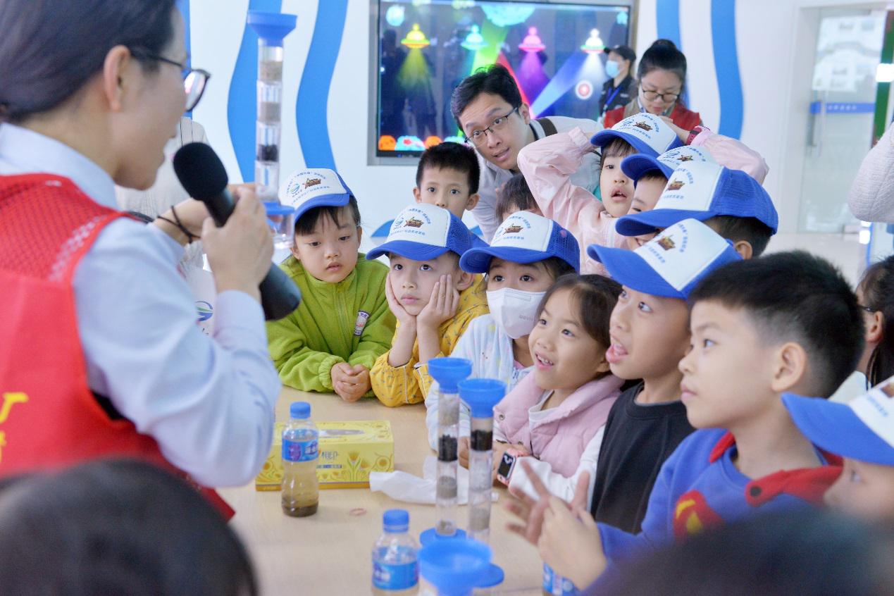 在水科普館,孩子們與講解員一起參與了水科學(xué)小實(shí)驗(yàn),通過(guò)親自動(dòng)手操作凈水科學(xué)實(shí)驗(yàn),更直觀地感受到“干凈水”的由來(lái)。在垃圾分類宣傳陣地,孩子們利用陣地中的道具開(kāi)展垃圾分類競(jìng)賽游戲,在歡聲笑語(yǔ)中加深了對(duì)垃圾分類的認(rèn)識(shí)。